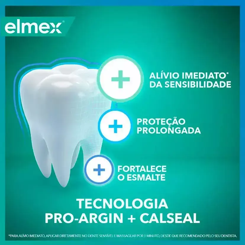 O Creme Dental Elmex Whitening é a escolha ideal para quem busca dentes mais brancos sem abrir mão da proteção contra a sensibilidade. Desenvolvido com tecnologia suíça, combina Pro-Argin e Calseal, que formam uma barreira protetora sobre a dentina exposta, proporcionando alívio imediato e duradouro da sensibilidade.